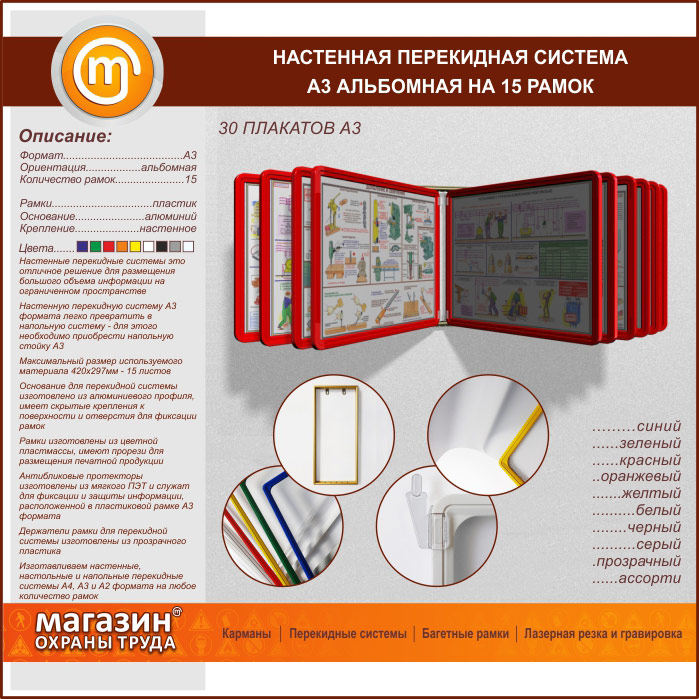 Настенная перекидная система А3 на 15 рамок альбомная в Обнинске купить