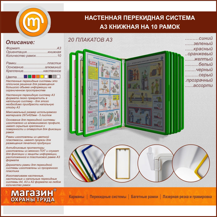 Настенная перекидная система А3 на 10 рамок книжная в Обнинске купить