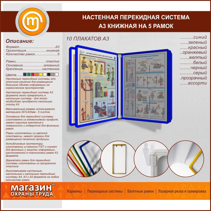Настенная перекидная система А3 на 5 рамок книжная в Обнинске купить