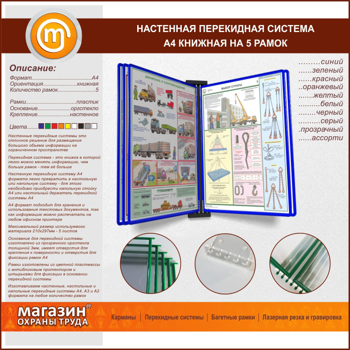 Настенная перекидная система А4 на 5 рамок книжная в Обнинске купить