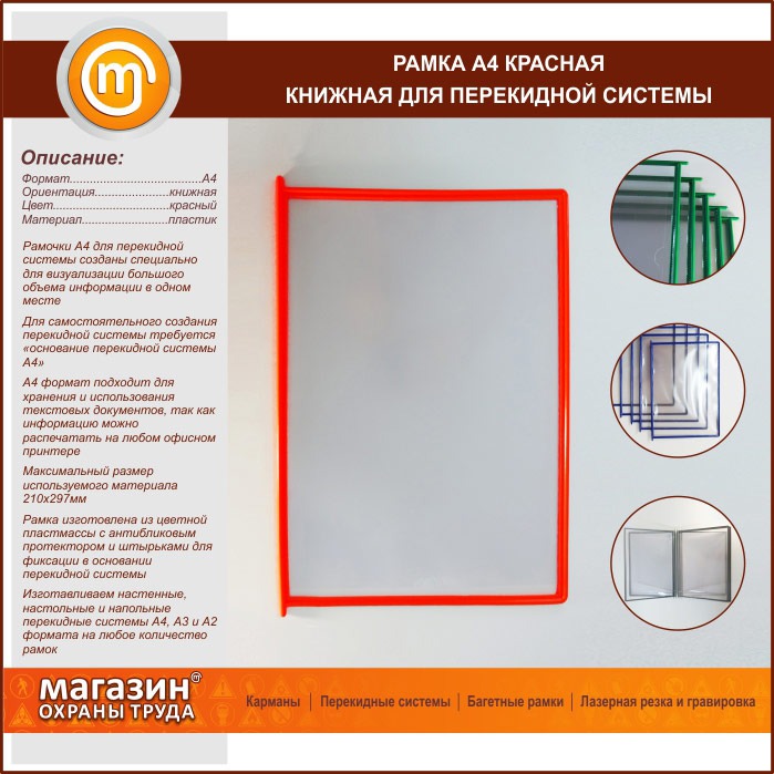 Рамка А4 красная книжная в Обнинске купить