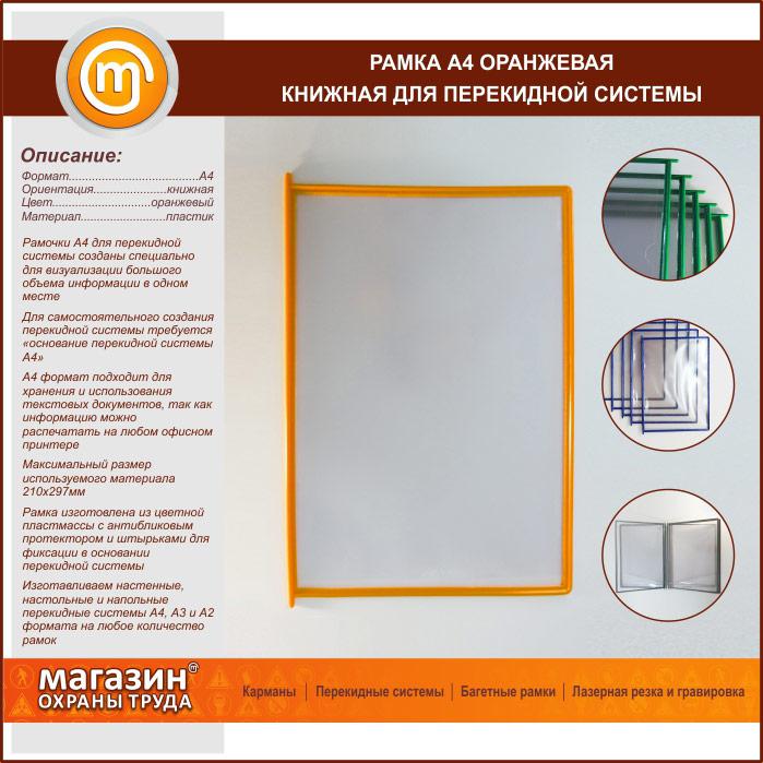 Рамка А4 оранжевая книжная в Обнинске купить