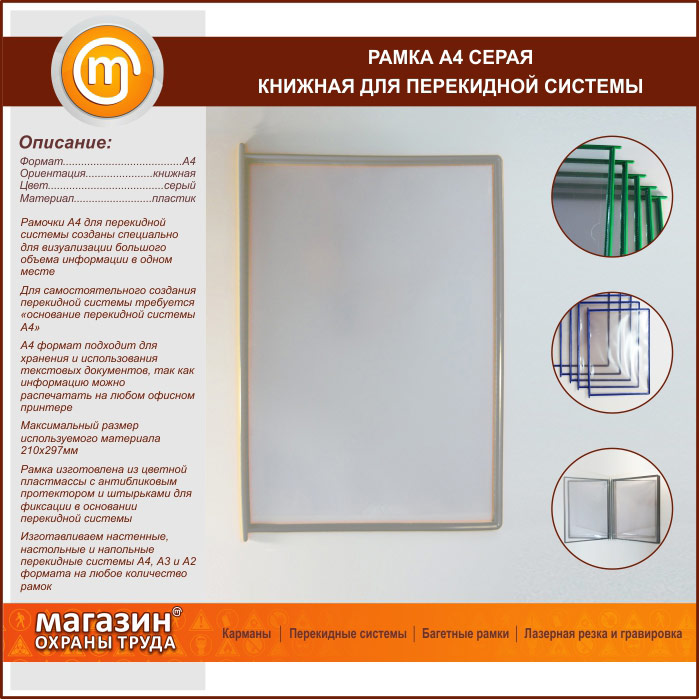 Рамка А4 серая книжная в Обнинске купить