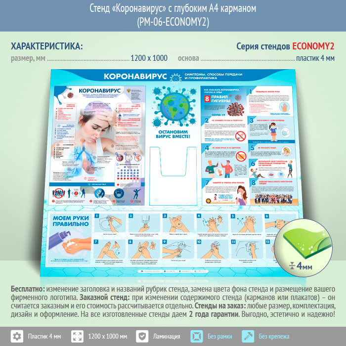 Стенд «Коронавирус» с глубоким А4 карманом (PM-06-ECONOMY2) в Обнинске купить
