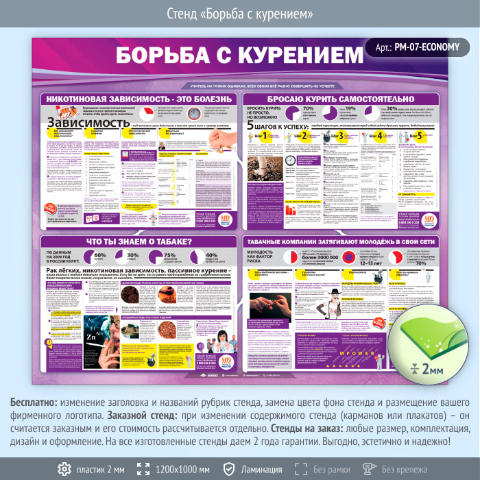 Стенд «Борьба с курением» (PM-07-ECONOMY) в Обнинске купить