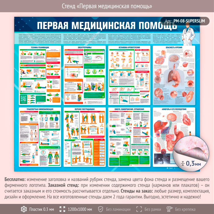 Стенд «Первая медицинская помощь» (PM-08-SUPERSLIM) в Обнинске купить