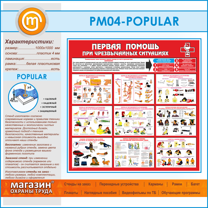 Стенд «Первая помощь при чрезвычайных ситуациях» (PM-04-POPULAR) в Обнинске купить