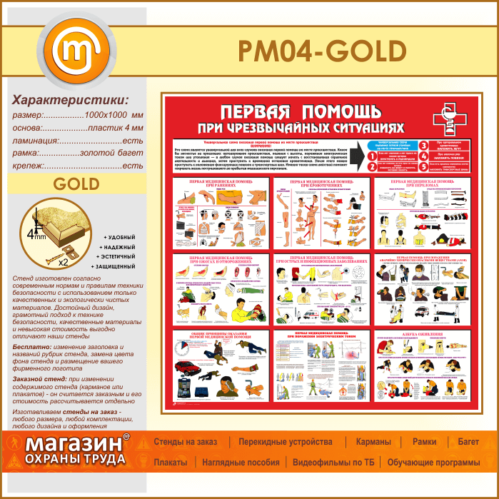 Стенд «Первая помощь при чрезвычайных ситуациях» (PM-04-GOLD) в Обнинске купить