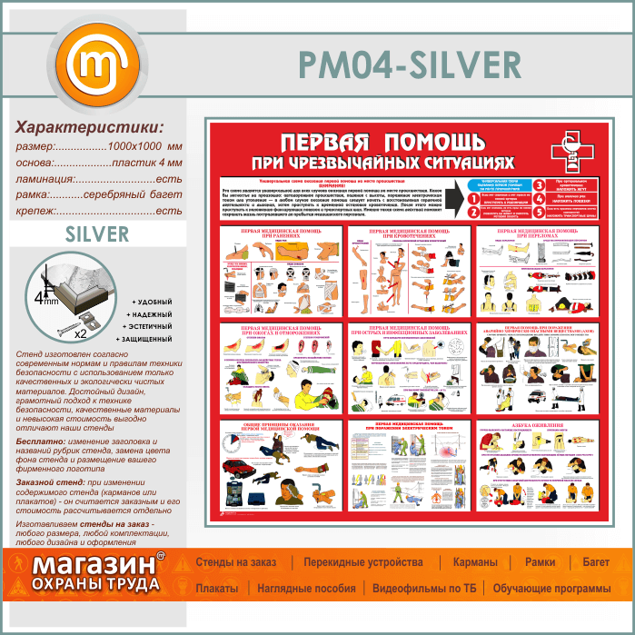 Стенд «Первая помощь при чрезвычайных ситуациях» (PM-04-SILVER) в Обнинске купить