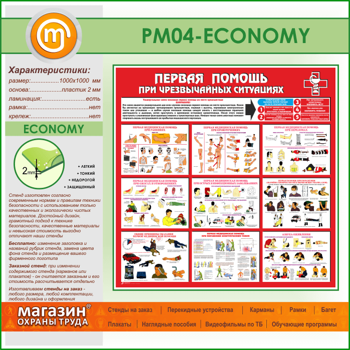 Стенд «Первая помощь при чрезвычайных ситуациях» (PM-04-ECONOMY) в Обнинске купить
