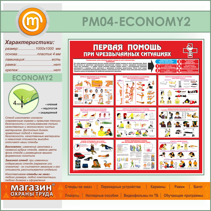 Стенд «Первая помощь при чрезвычайных ситуациях» (PM-04-ECONOMY2) в Обнинске купить