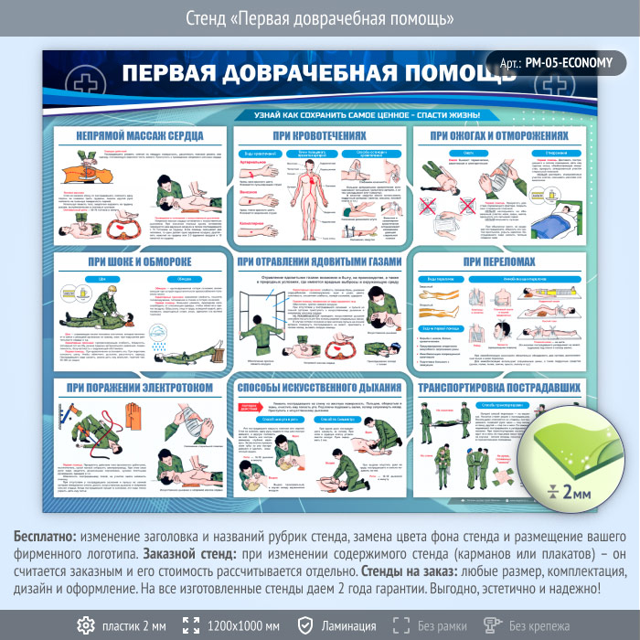 Стенд «Первая доврачебная помощь» (PM-05-ECONOMY) в Обнинске купить