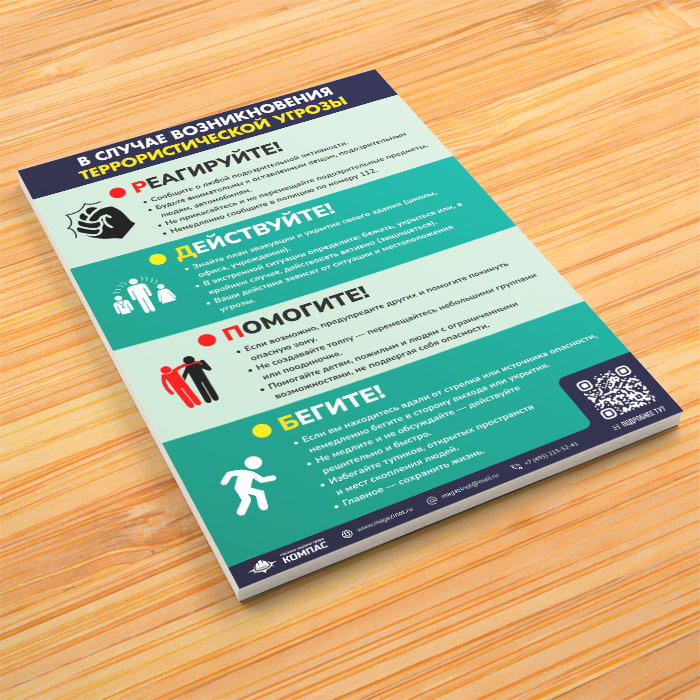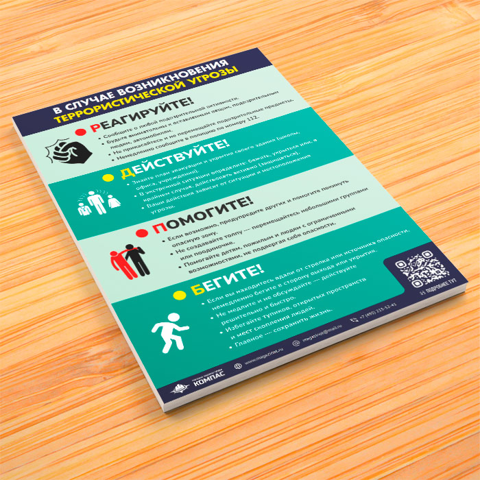 Плакат «В случае возникновения террористической угрозы» (М-109, ламинированная бумага, А3, 1 лист) в Обнинске купить