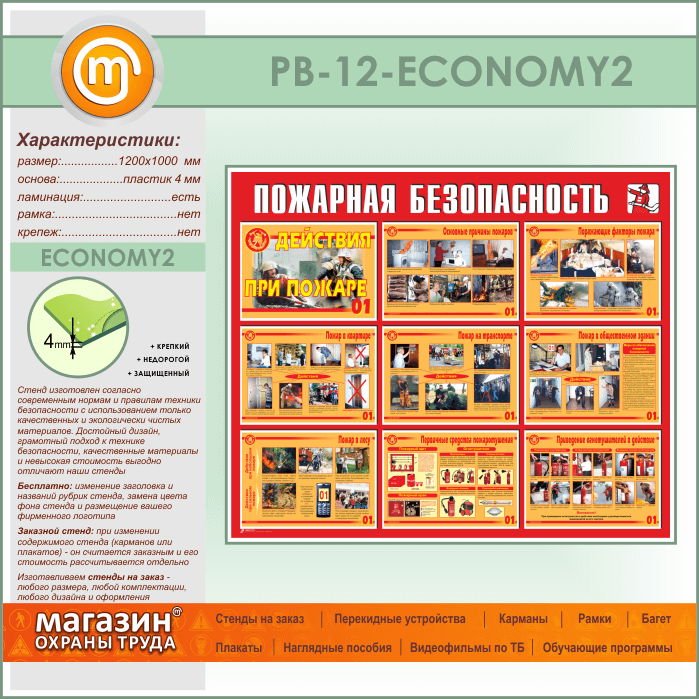 Стенд «Пожарная безопасность. Действия при пожаре» (PB-12-ECONOMY2) в Обнинске купить