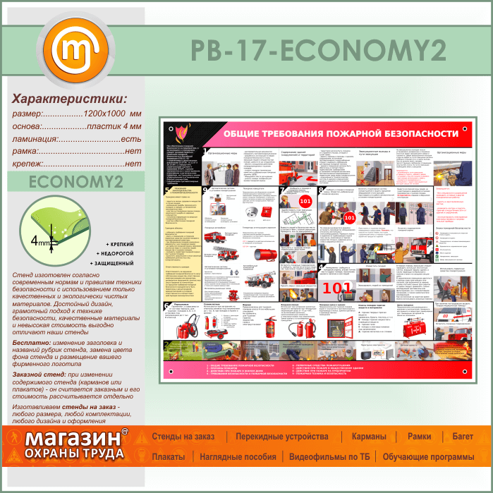 Стенд «Общие требования пожарной безопасности» (PB-17-ECONOMY2) в Обнинске купить
