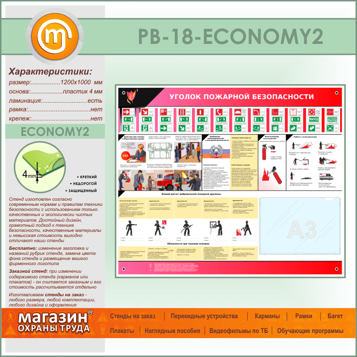 Стенд «Уголок пожарной безопасности» с карманом А3 формата (PB-18-ECONOMY2) в Обнинске купить