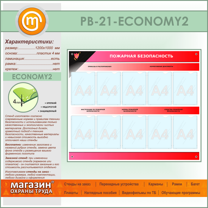 Стенд «Пожарная безопасность» с 10 карманами (PB-21-ECONOMY2) в Обнинске купить