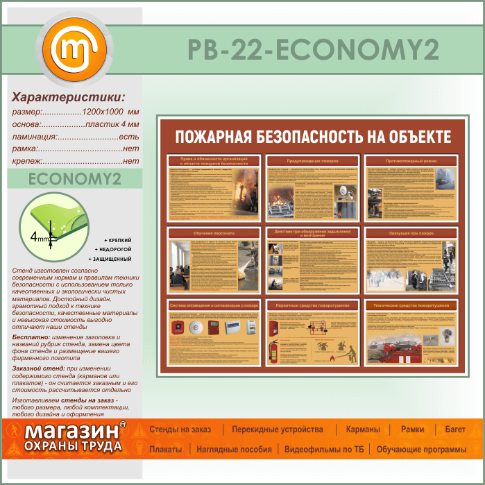 Стенд «Пожарная безопасность на объекте» (PB-22-ECONOMY2) в Обнинске купить