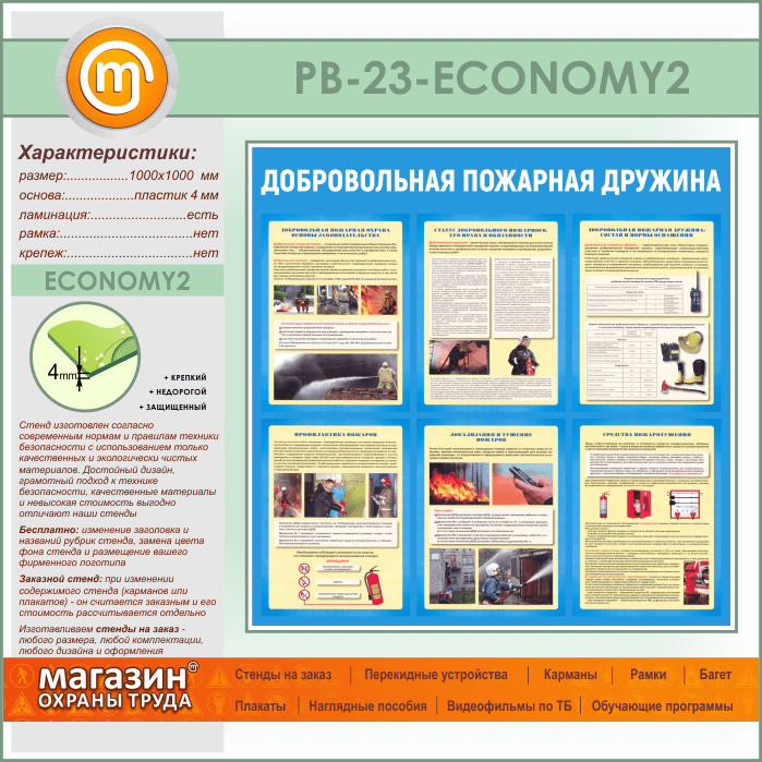 Стенд «Добровольная пожарная дружина» (PB-23-ECONOMY2) в Обнинске купить