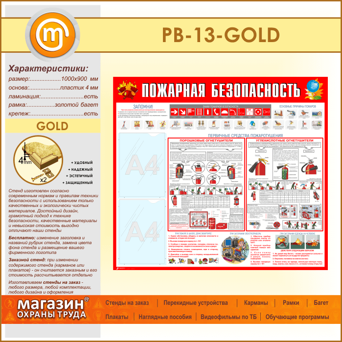 Стенд «Пожарная безопасность» с 2 карманами (PB-13-GOLD) в Обнинске купить