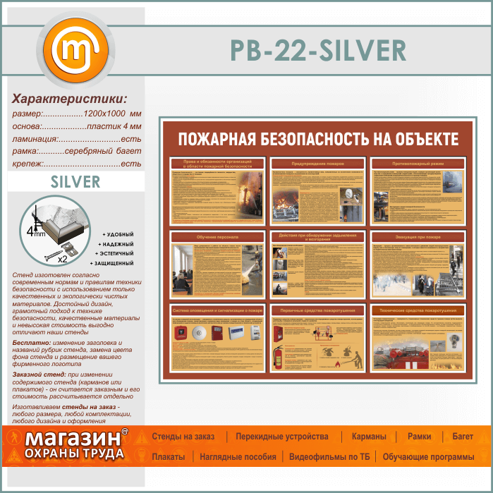 Стенд «Пожарная безопасность на объекте» (PB-22-SILVER) в Обнинске купить