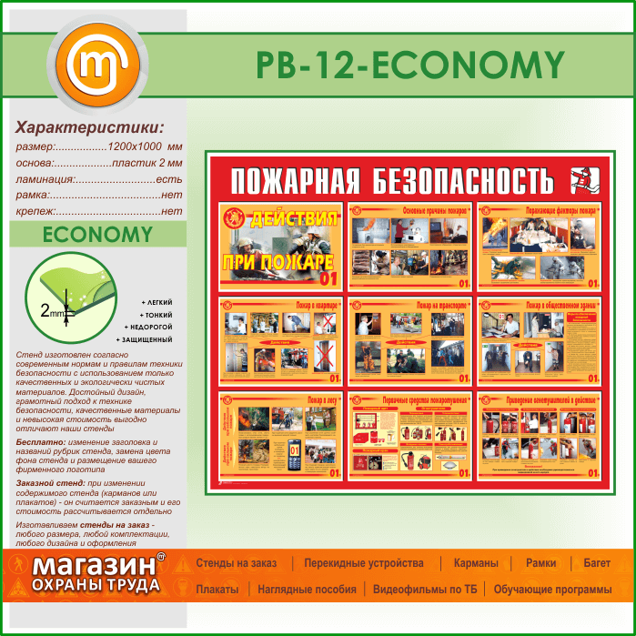 Стенд «Пожарная безопасность. Действия при пожаре» (PB-12-ECONOMY) в Обнинске купить