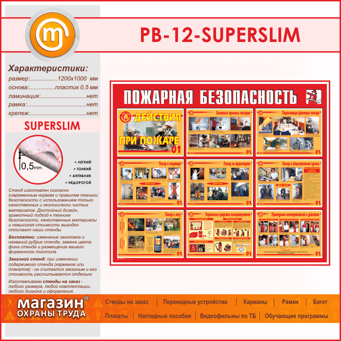 Стенд «Пожарная безопасность. Действия при пожаре» (PB-12-SUPERSLIM) в Обнинске купить