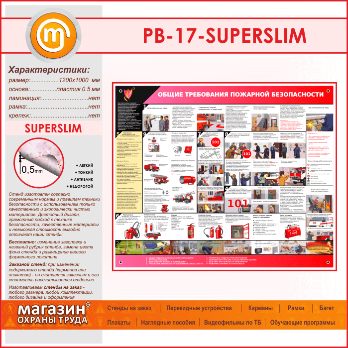 Стенд «Общие требования пожарной безопасности» (PB-17-SUPERSLIM) в Обнинске купить