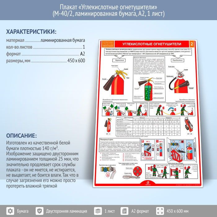 Плакат «Углекислотные огнетушители» (М-40/2, ламинированная бумага, А2, 1 лист) в Обнинске купить