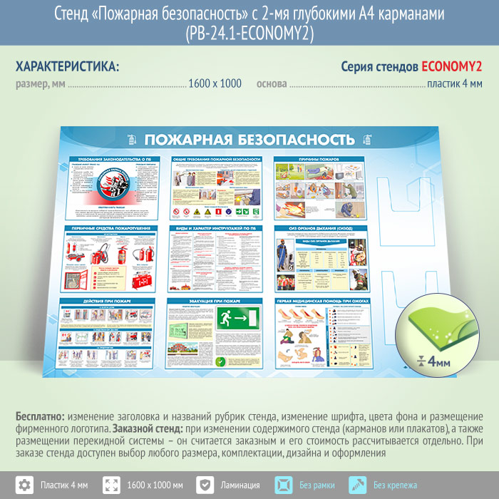 Стенд «Пожарная безопасность» с 2-мя глубокими А4 карманами (PB-24.1-ECONOMY2) в Обнинске купить