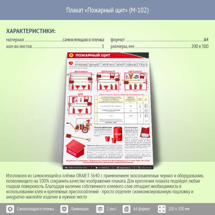 Плакат «Пожарный щит» (М-102, самоклеящаяся пленка, А4, 1 лист) в Обнинске купить