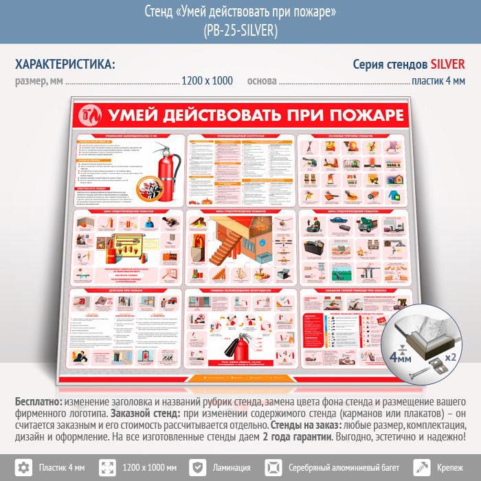 Стенд «Умей действовать при пожаре» (PB-25-SILVER) в Обнинске купить
