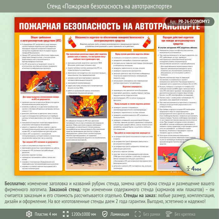 Стенд «Пожарная безопасность на автотранспорте» (PB-26-ECONOMY2) в Обнинске купить