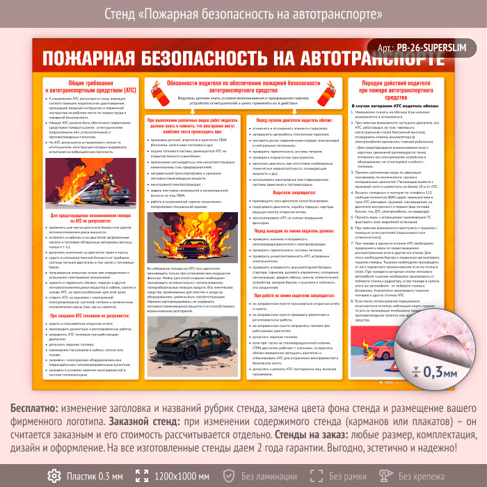 Стенд «Пожарная безопасность на автотранспорте» (PB-26-SUPERSLIM) в Обнинске купить