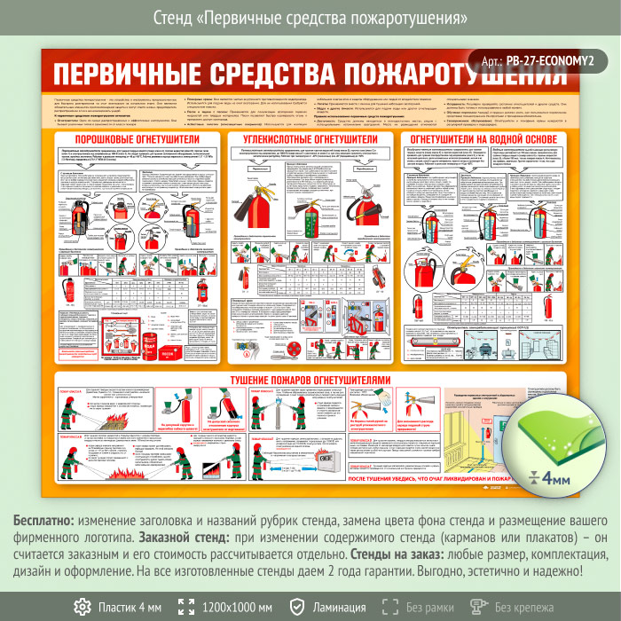 Стенд «Первичные средства пожаротушения» (PB-27-ECONOMY2) в Обнинске купить