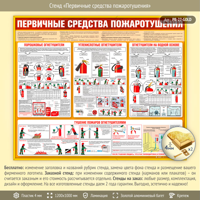 Стенд «Первичные средства пожаротушения» (PB-27-GOLD) в Обнинске купить