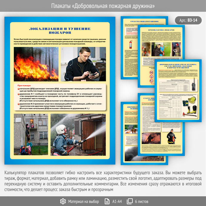 Плакаты «Добровольная пожарная дружина» (ВЗ-14, 6 листов) в Обнинске купить