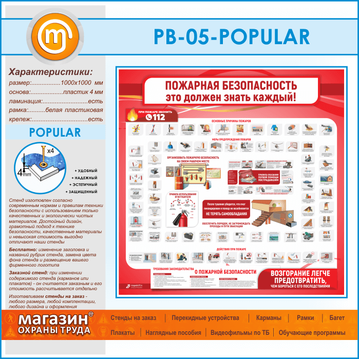 Стенд «Пожарная безопасность. Это должен знать каждый» (PB-05-POPULAR) в Обнинске купить