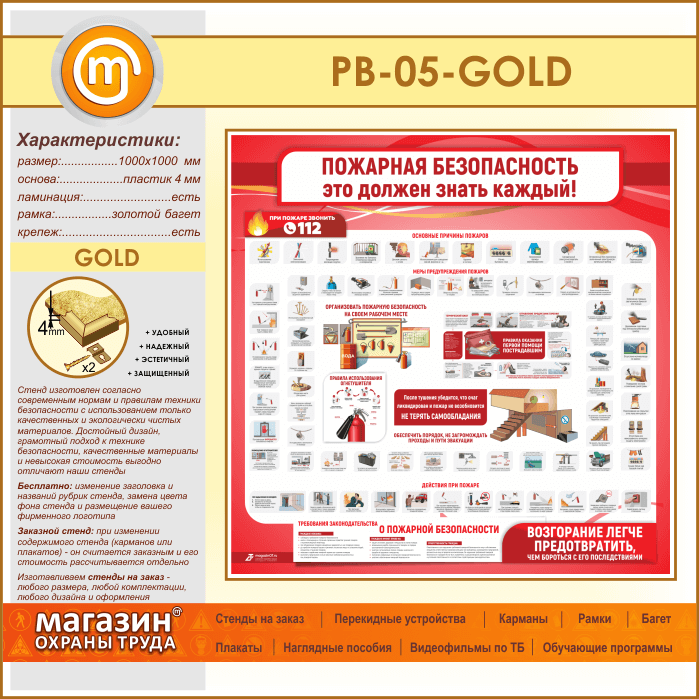 Стенд «Пожарная безопасность. Это должен знать каждый» (PB-05-GOLD) в Обнинске купить