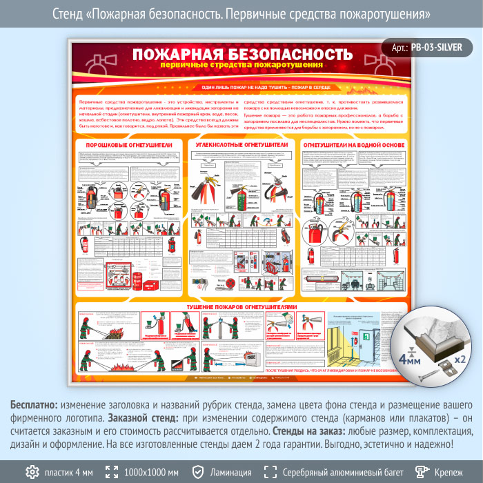 Стенд «Пожарная безопасность. Первичные средства пожаротушения» (PB-03-SILVER) в Обнинске купить