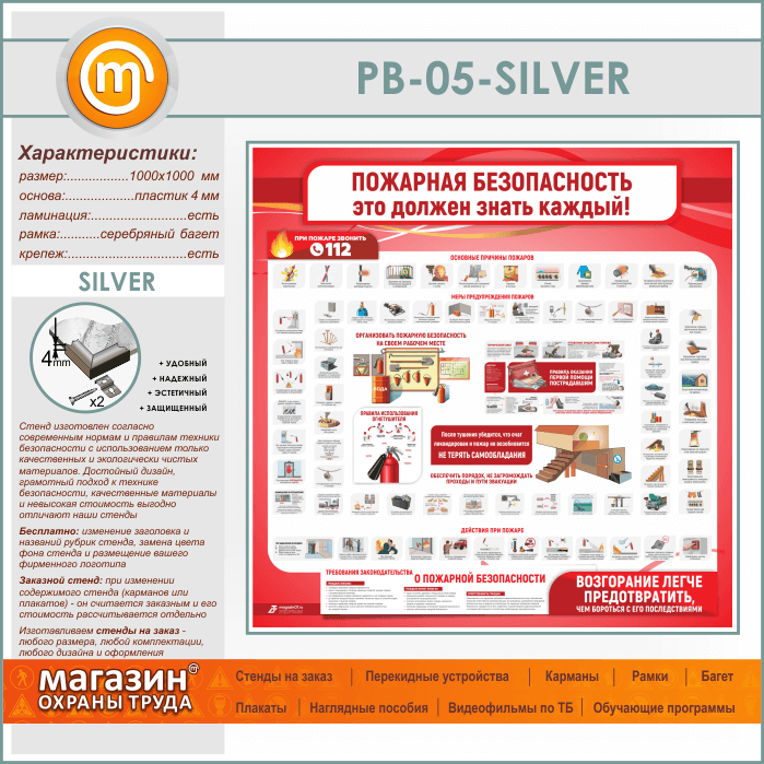 Стенд «Пожарная безопасность. Это должен знать каждый» (PB-05-SILVER) в Обнинске купить