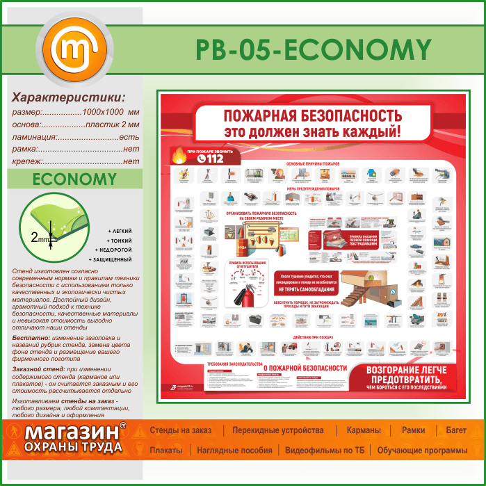 Стенд «Пожарная безопасность. Это должен знать каждый» (PB-05-ECONOMY) в Обнинске купить