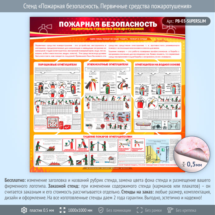 Стенд «Пожарная безопасность. Первичные средства пожаротушения» (PB-03-SUPERSLIM) в Обнинске купить