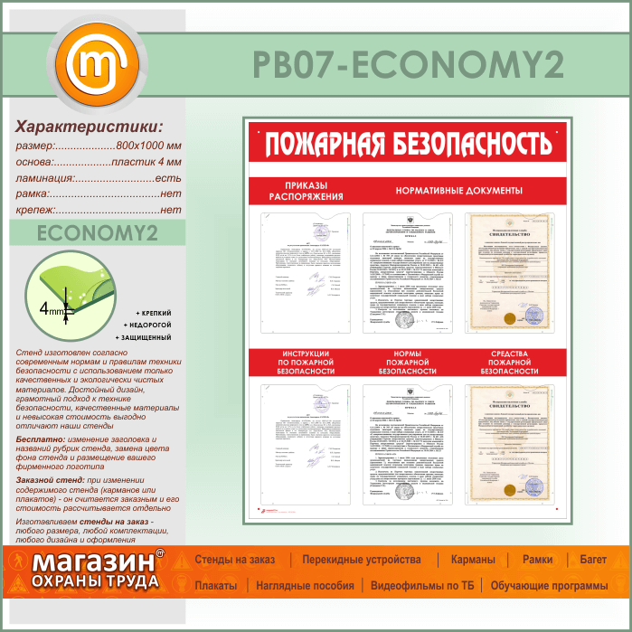 Стенд «Пожарная безопасность» с 6 карманами (PB-07-ECONOMY2) в Обнинске купить
