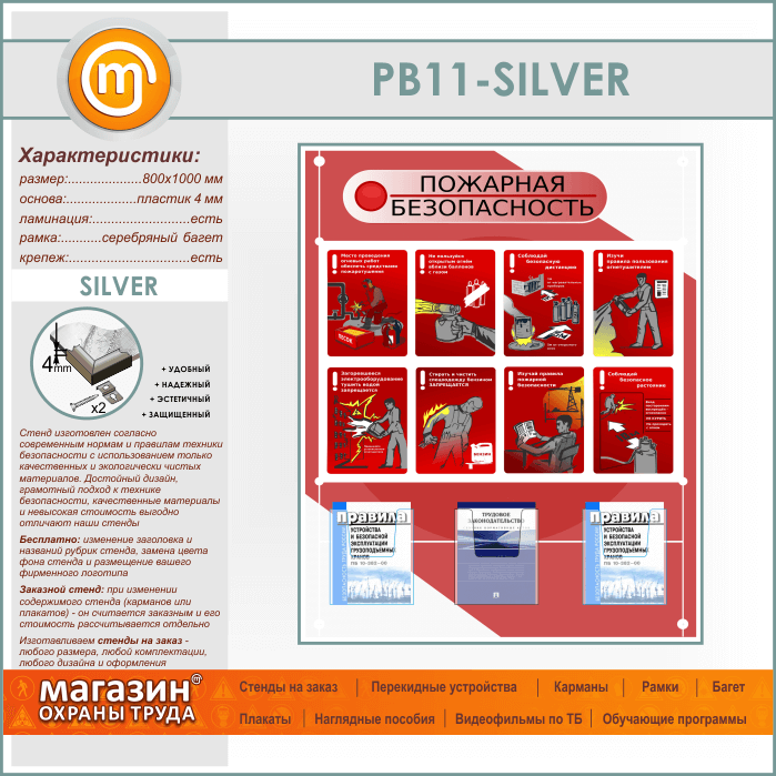 Стенд «Стенд пожарная безопасность в строительстве» с 3 объемными карманами (PB-11-SILVER) в Обнинске купить