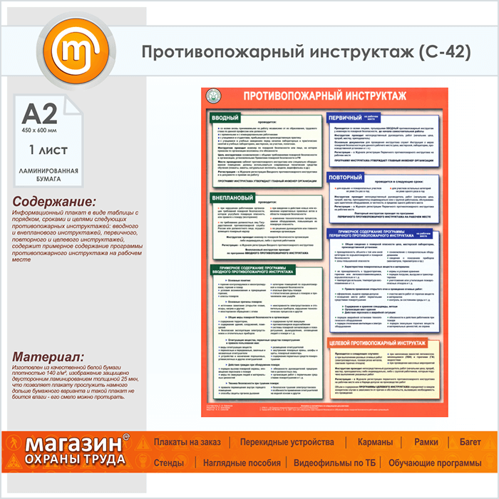 Плакат «Противопожарный инструктаж» (С-42, ламинированная бумага, А2, 1 лист) в Обнинске купить