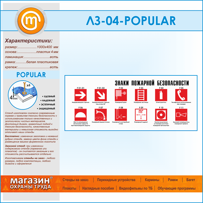 Стенд «Знаки пожарной безопасности» (LZ-04)