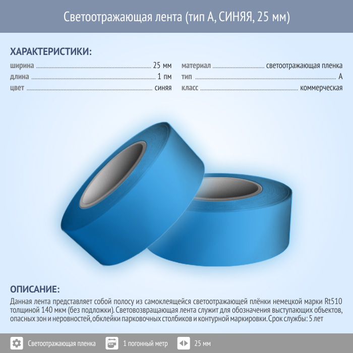 Светоотражающая однородная лента (тип А, СИНЯЯ, 25 мм х 1 п.м.) в Обнинске купить
