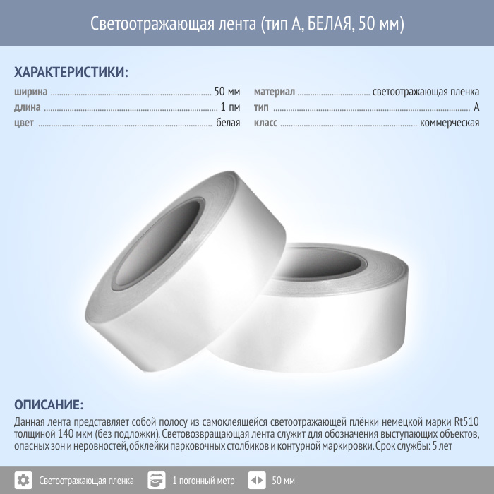 Светоотражающая однородная лента (тип А, БЕЛАЯ, 50 мм х 1 п.м.) в Обнинске купить