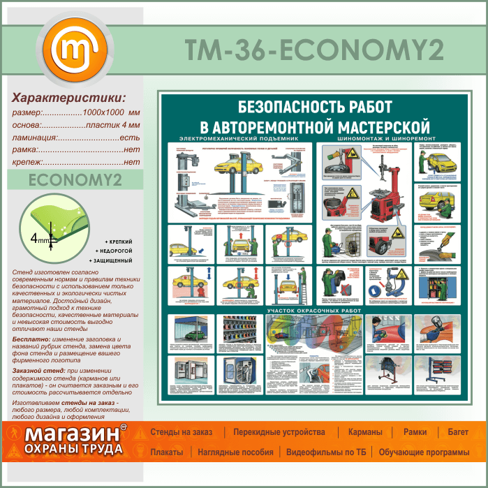Стенд «Безопасность работ в авторемонтной мастерской» (TM-36-ECONOMY2) в Обнинске купить
